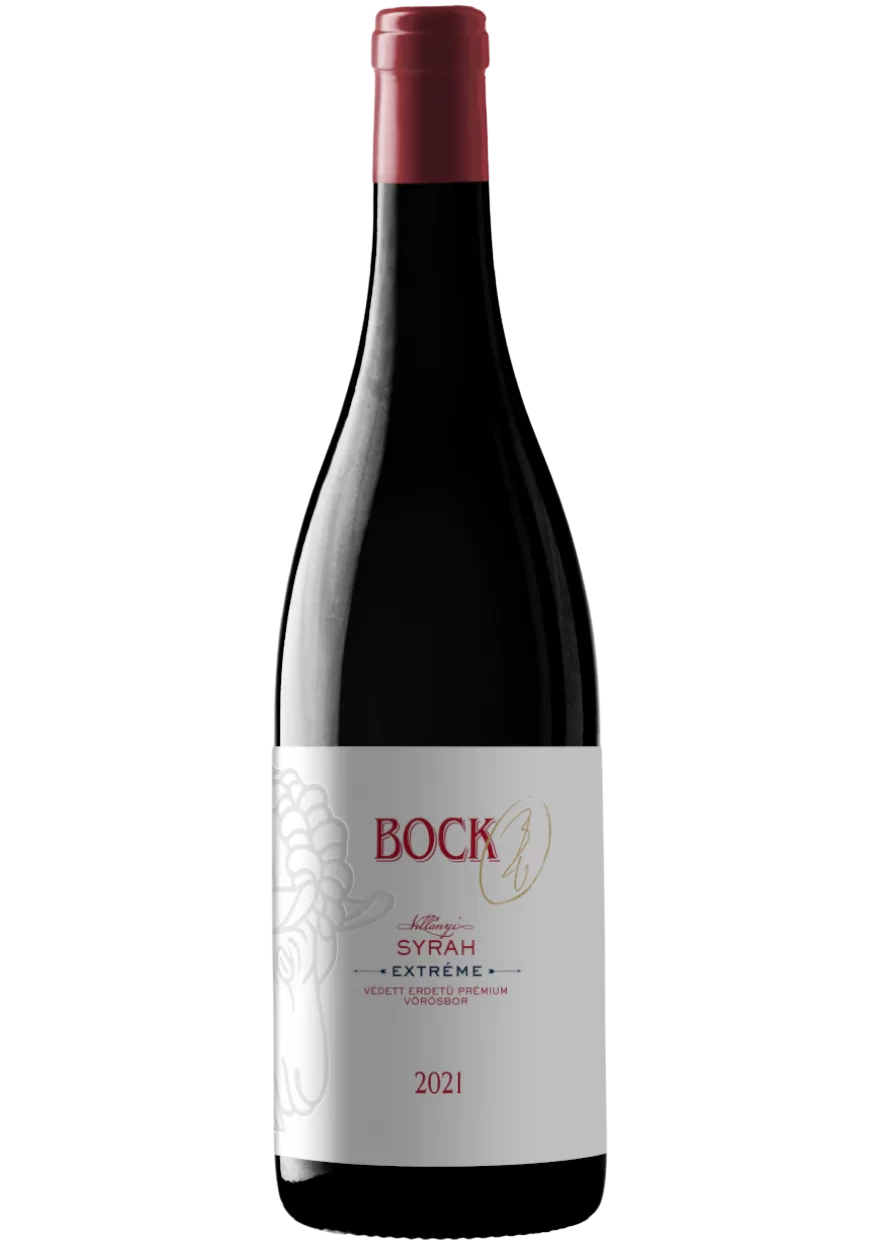A Bock BV Syrah Extréme 2021 Villány különlegessége. Mély, sötét szín, illatában fekete bors, szeder, szilva és enyhe füstös jegyek. A korty erőteljes, komplex és rétegezett, a tanninok markánsak, de nem tolakodóak. A hordós érlelés további fűszerességet, vaníliát és étcsokoládés árnyalatokat hoz. Ez a bor igazi „nagy syrah”, amely méltó helyet foglal el a nemzetközi mezőnyben is. Ideális vörös húsokhoz, vadételekhez és különleges alkalmakra. A Bock válogatás sorozat egyik legmerészebb és legkarakteresebb tétele.