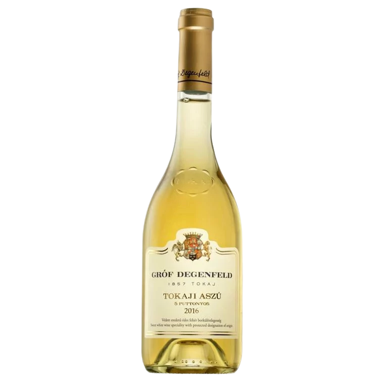 A Gróf Degenfeld 5 Puttonyos Aszú 2017 egy igazi tokaji klasszikus, amely a nemes rothadásnak köszönhetően páratlan gazdagságot és komplexitást hordoz. Mély aranysárga színe a hosszú érlelés ígéretét rejti, illatában sárgabaracklekvár, méz, kandírozott citrusok, aszalt gyümölcsök és finom fűszeresség jelenik meg. A korty telt, krémes textúrával, elegáns savgerinccel, amely tökéletesen ellensúlyozza az édességet. Hosszú lecsengése mézes-gyümölcsös harmóniát hagy maga után. Ünnepi pillanatok, édes desszertek és érett sajtok méltó kísérője.