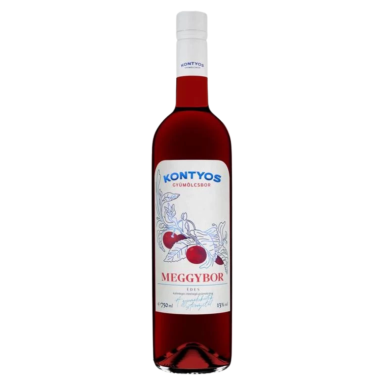 A Kontyos Édes Meggybor 0,75L lágy, édes bor, mely a meggy jellegzetes zamatait és frissességét adja vissza. Mély rubinvörös árnyalat, illatában érett meggy, cseresznye és enyhe virágos jegyek. Kortyban kerek, édes, harmonikus test, finom savak és hosszan tartó gyümölcsös lecsengés jellemzik. Tökéletes desszertekhez, csokoládés édességekhez vagy önmagában, aperitifként fogyasztva.